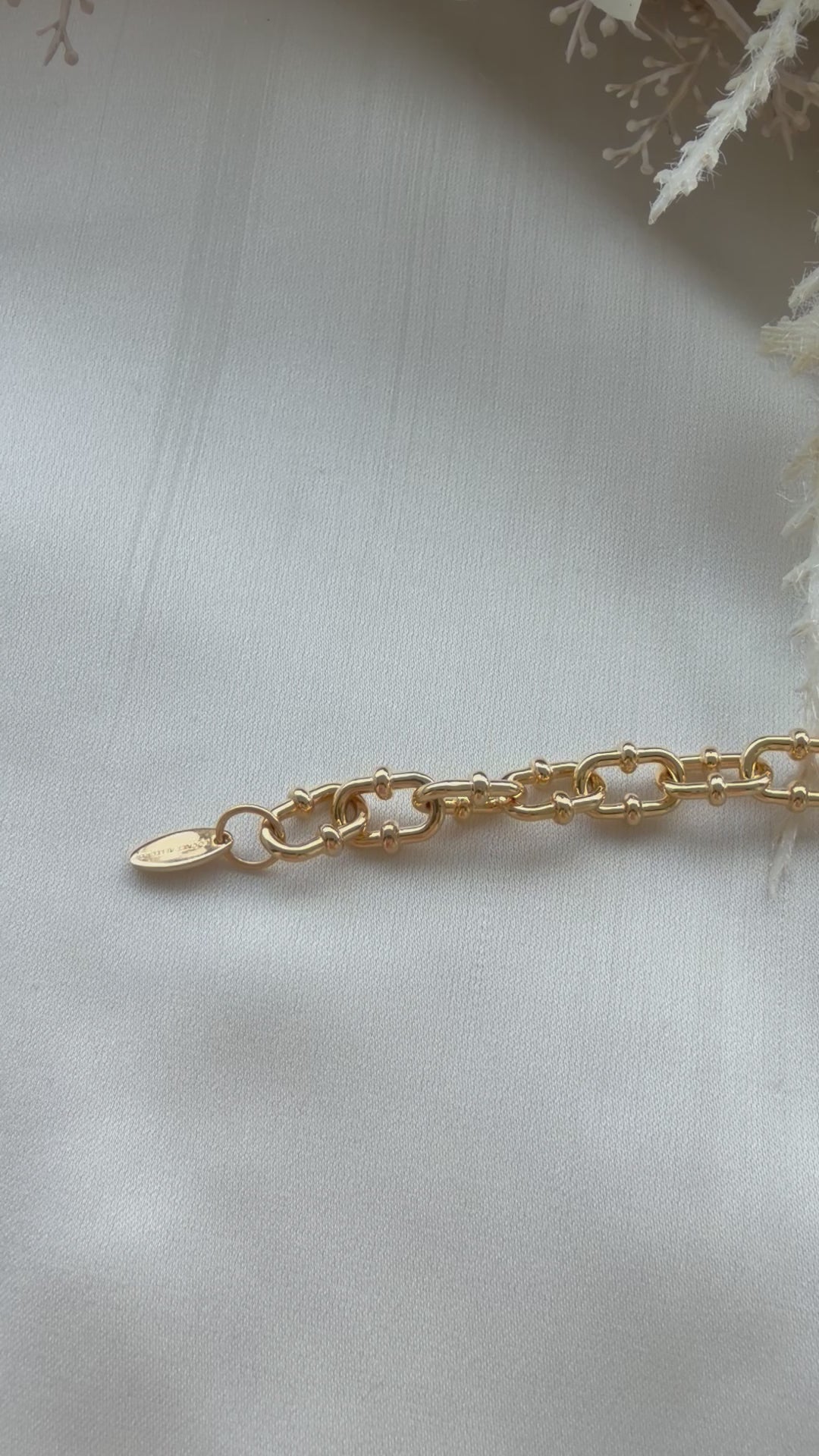 Available in Small (~16cm), Medium(~17.5cm) and Large(~19cm) length. For reference, Rachel’s wrist is 14.5 cm and she wears S with almost no allowance because of the chunky chain.