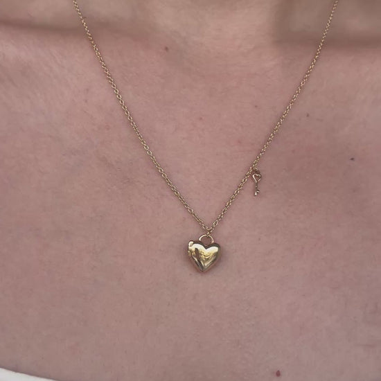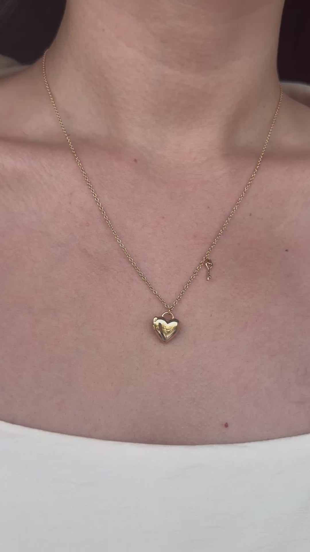 Mini Heart Locket Necklace with Key Charm in Solid Gold 18K & 14K