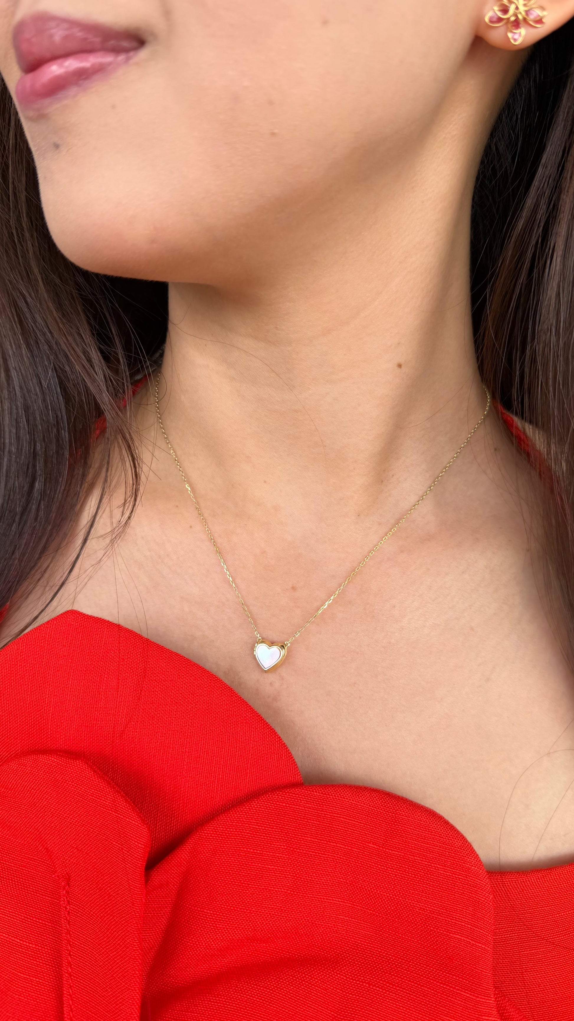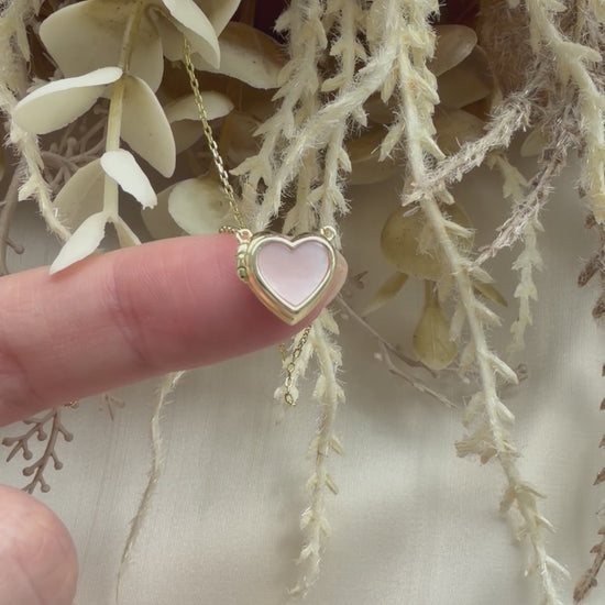 Pink Mother of Pearl & Red Agate Heart Sliding Locket