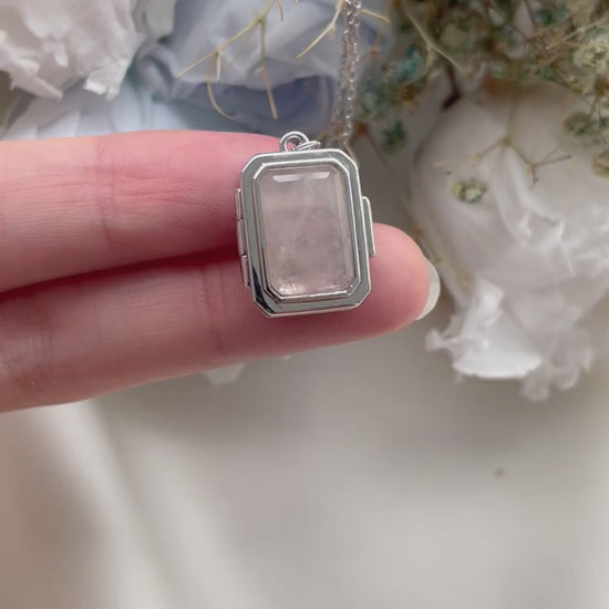 Rose Quartz Emerald Cut Locket in Sterling Silver