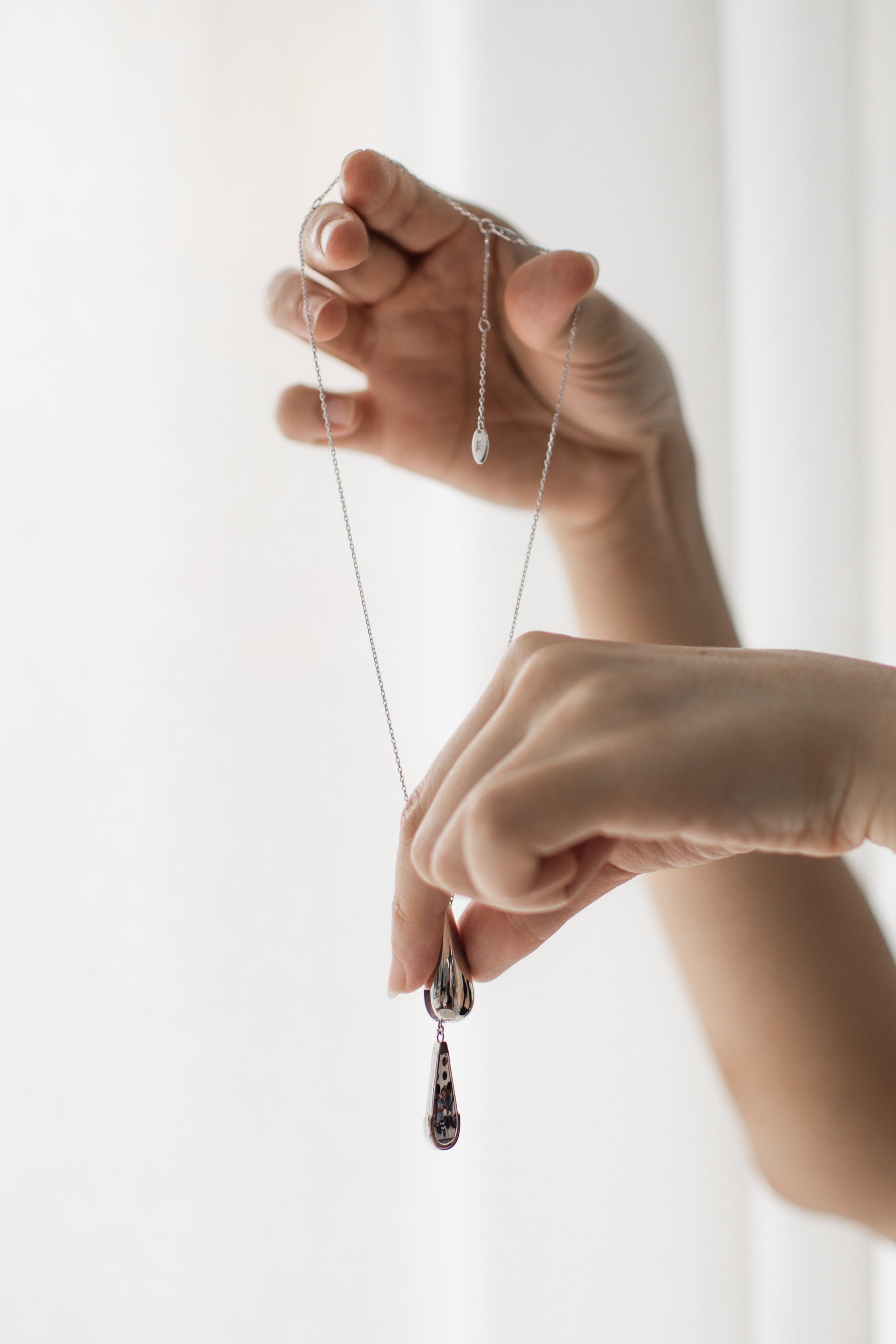 A locket unlike any other — the Sliding Teardrop Locket features a unique sliding mechanism that lets you unveil your photos with ease. Designed to be 2 inches longer than our usual lockets (18–20 inches adjustable), it drapes gracefully along the neckline, creating an elongated and elegant silhouette.