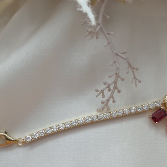 Tennis Paper Clip Charm Locket Bracelet (Gold Vermeil)